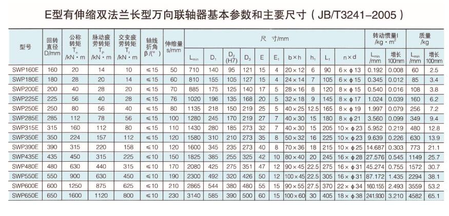 E型有伸縮雙法蘭長型萬向聯(lián)軸器 |