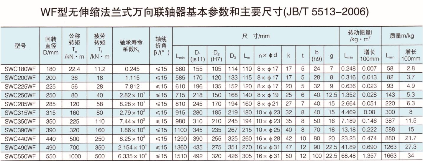 WF型無伸縮法蘭式萬向聯(lián)軸器 |